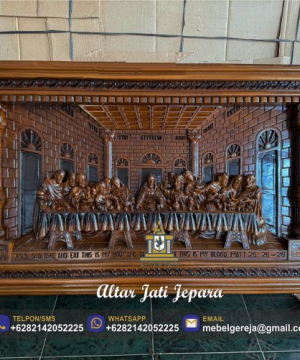 ukiran perjamuan suci kayu jati,